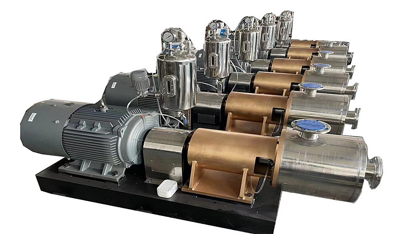 單級(jí)或三級(jí)管線式分散乳化機(jī)是用于連續(xù)生產(chǎn)或循環(huán)處理精細(xì)物料的高性能設(shè)備,工作腔內(nèi)配置粗、中、細(xì)三組高精度的定轉(zhuǎn)子,物料經(jīng)過(guò)三組定轉(zhuǎn)子的多層高速剪切、分散、乳化、均質(zhì),物料處理更精細(xì),提高生產(chǎn)效率。